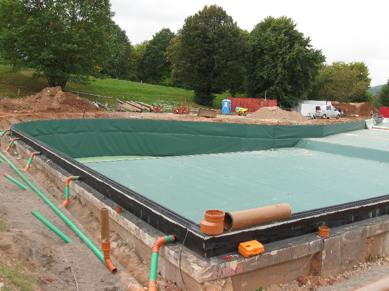 Außerdem sind die Kosten für Wartungsarbeiten bei einer fachgerecht angelegten Folienauskleidung sehr gering. PVC-Folie oder FPO-Folie sind sehr robust, wodurch eine hervorragende Dichtigkeit und Langlebigkeit gewährleistet ist. Kleinere Gemeinden verzichten aufgrund der hohen Kosten häufig auf den Bau, oder die Sanierung eines Schwimmbads. Ein öffentlicher Badeteich lässt sich jedoch sehr kostengünstig realisieren und Folgekosten gibt es kaum, wenn man sich für die richtige Abdichtung des Naturbads entscheidet. Für die Folienauskleidung mit PVC-Folie oder FPO-Folie müssen nur wenige Vorarbeiten geleistet werden. Das spart Zeit und Geld. Darüber hinaus sind die Kosten für die Folienabdichtung viel geringer, als beim Bau eines Schwimmbeckens mit Fliesen, oder anderen Baumaterialien.
