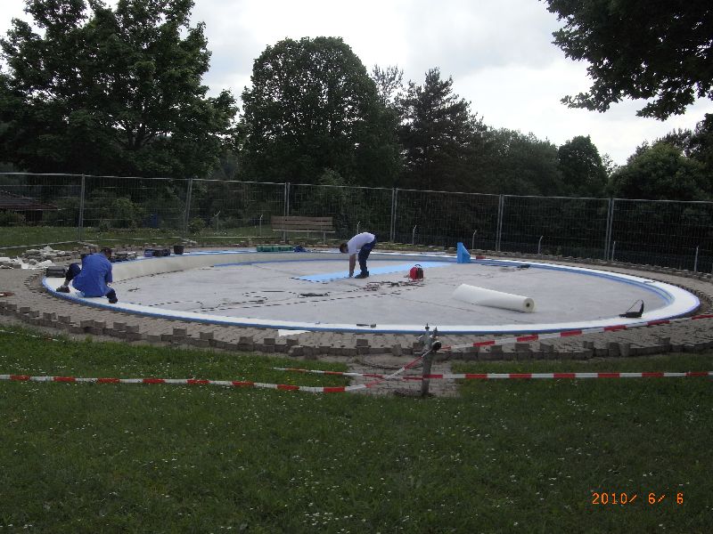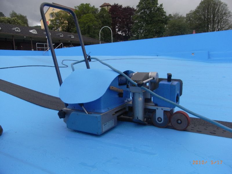 Für die Beckensanierung ist der Zeitraum der Schwimmbadsanierung sehr wichtig. Wir garantieren Ihnen, das Ihr Bad bis zur nächsten Saison wieder pikobello ist. Dichtungsbahnen aus PVC (Schwimmbadfolie) und Dichtungsbahnen mit flexiblen Polyofinen (FPO) sind äußert langlebig und besitzen mit verschiedenen Gewebelagen eine sehr hohe Durchschlagfestigkeit. Die Folienbahnen enthalten selbstverständlich keine flüchtigen Stoffe. Flüchtige Stoffe könnten das Badewasser verunreinigen oder zu einer Materialveränderung führen. Mit Hilfe von professionellen Schweißautomaten werden die Bahnen fachgerecht miteinander verschweißt.