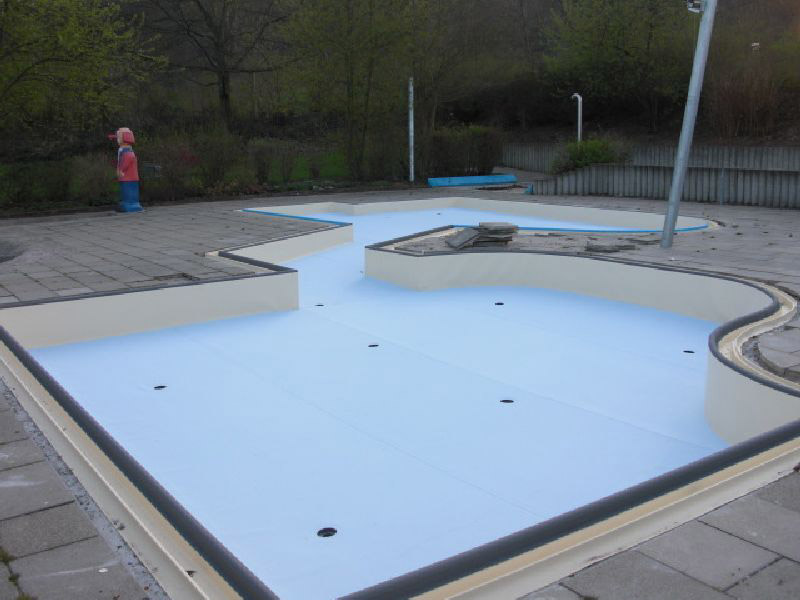 So können zum Beispiel auch alte Schwimmbecken mit einer Folienauskleidung saniert werden.